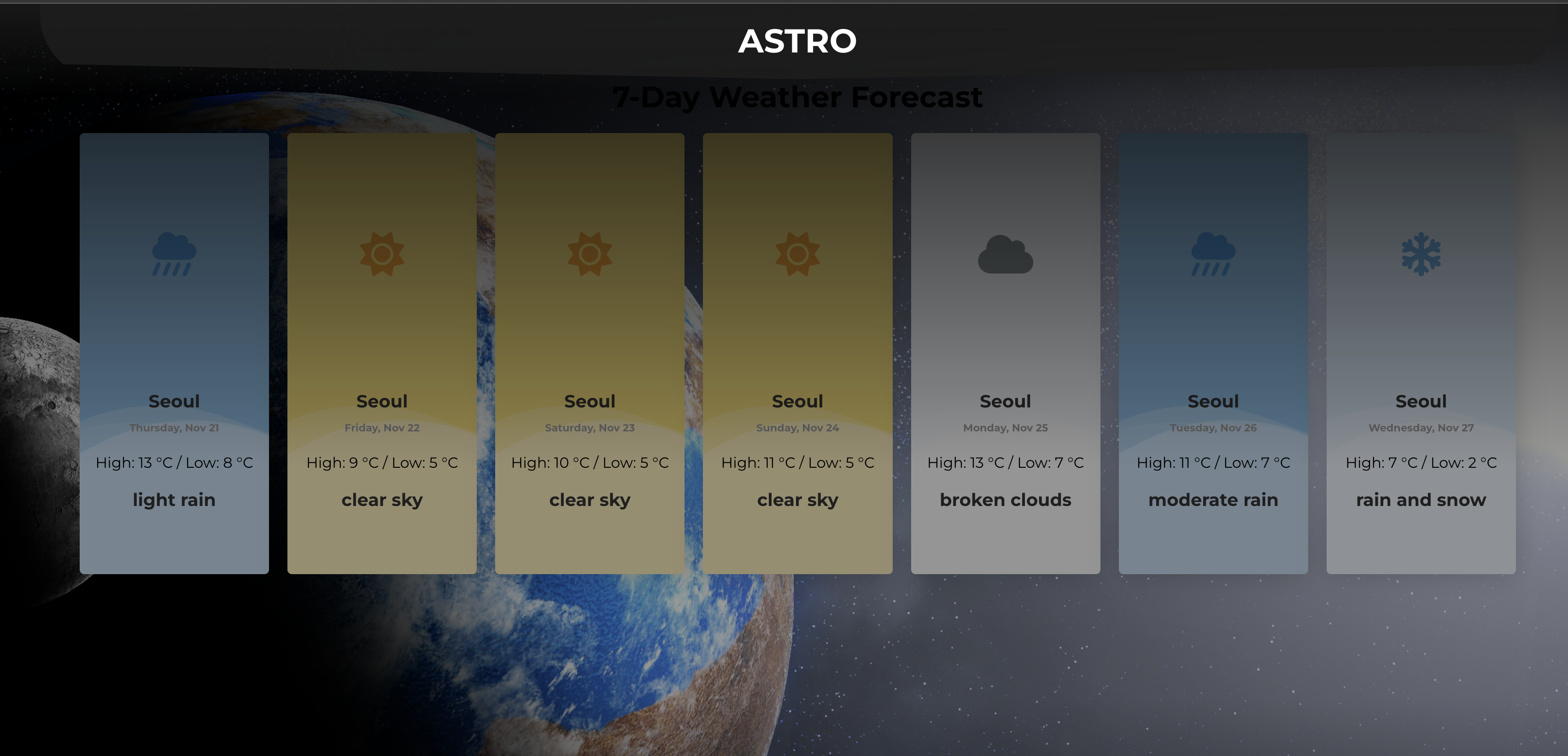 다 했다 SCSS도입 했고 WeatherCard로 Card는 분리해서 관리함.
