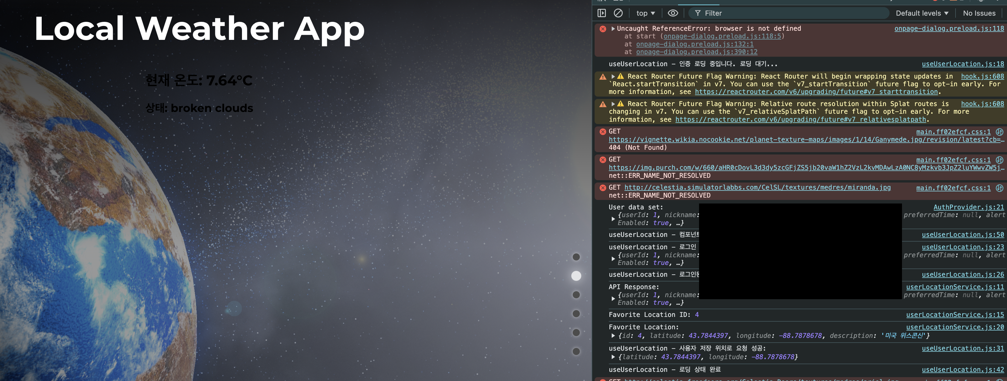 useUserLocation훅을 사용해서 요청을 보낼거고, WeatherPage.js에서 mainPage접근시에 알아서 요청되게 했음.